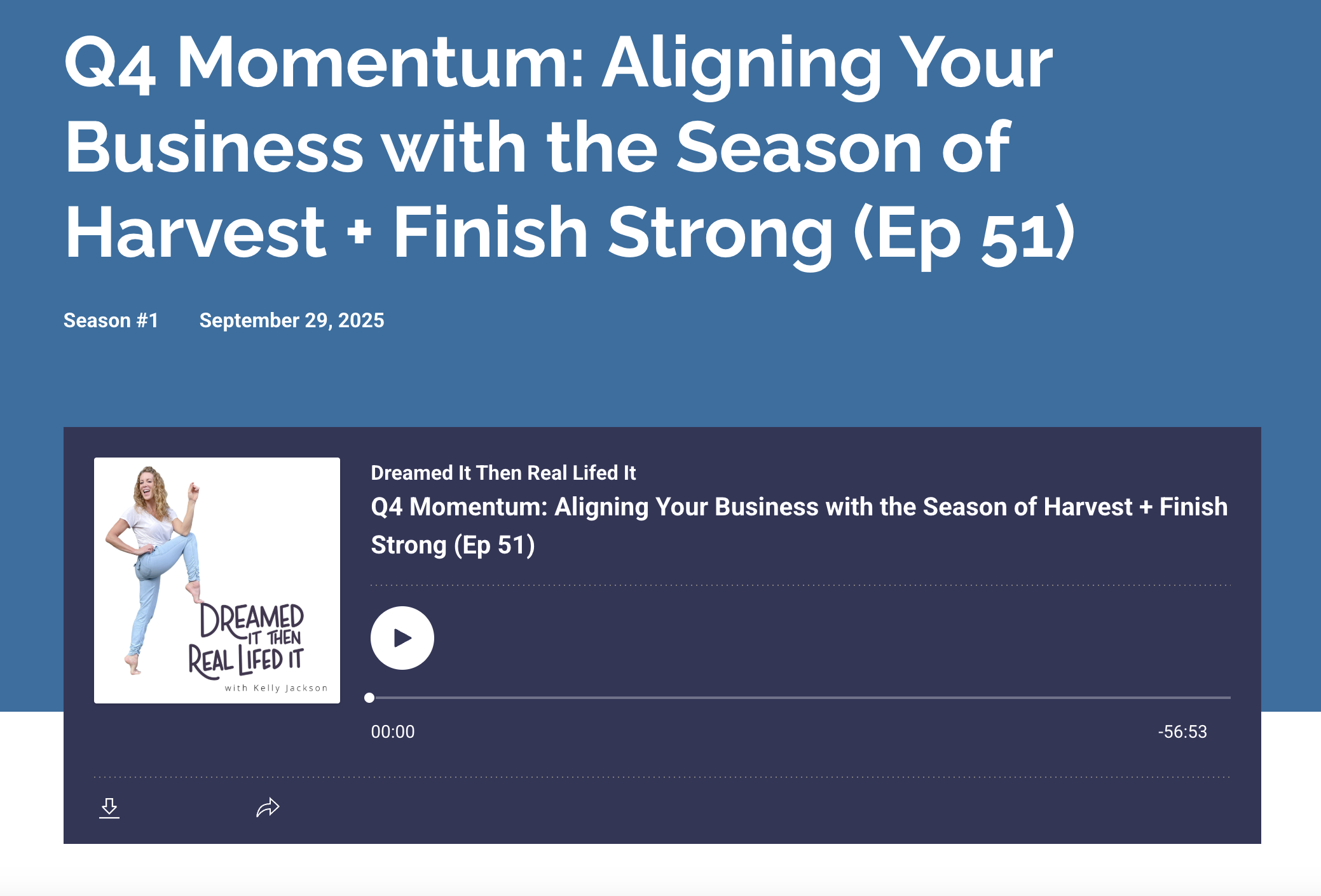 ✨ If you’re ready to align with this season and finish strong, tune into Episode 51: Q4 Momentum—Aligning Your Business with the Season of Harvest + Finish Strong on Dreamed It Then Real Lifed It.
