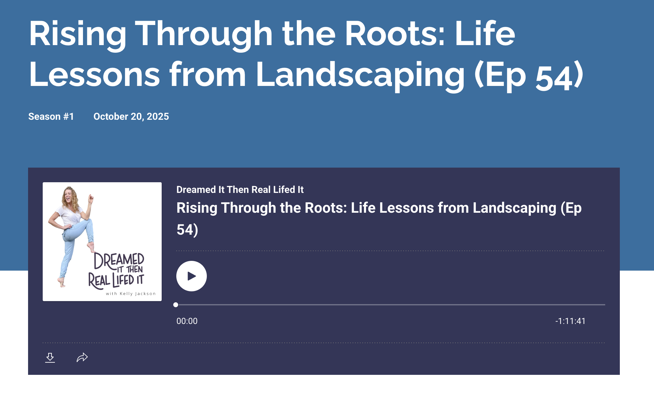 If this resonates with you, you can go deeper by listening to Episode 54 of the podcast, “Rising Through the Roots: Life Lessons from Landscaping”. It’s the perfect companion for this moment.